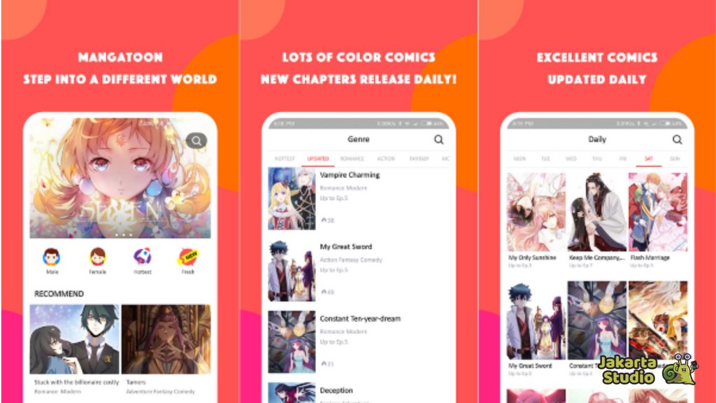 Aplikasi ini memiliki antarmuka yang berwarna dan mudah digunakan, cocok untuk pembaca dari berbagai kalangan. Koleksinya pun tak kalah beragam — kamu bisa menemukan komik dari Jepang, Korea, Cina, Indonesia, dan Thailand.