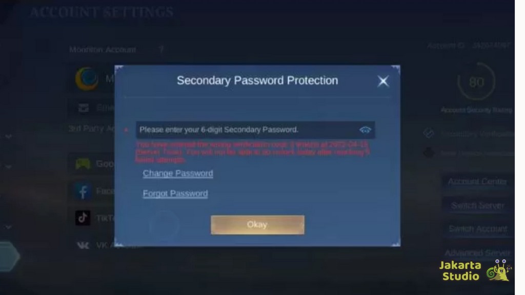 Sistemnya cukup sederhana. Saat seseorang berusaha menghubungkan akun MLBB kamu ke platform lain (seperti Facebook, Google, atau VK), sistem akan meminta kata sandi sekunder.