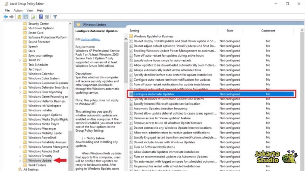 - Buka menu Computer Configuration → Administrative Templates → Windows Components → Windows Update.